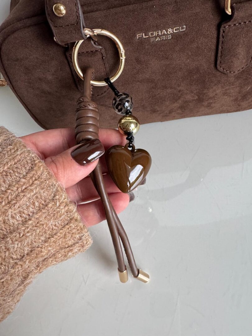 Torebka z ekologicznego zamszu z zawieszką.