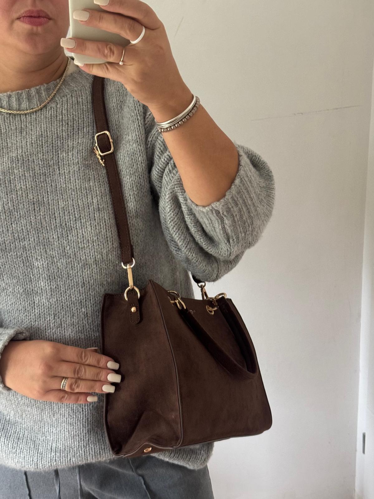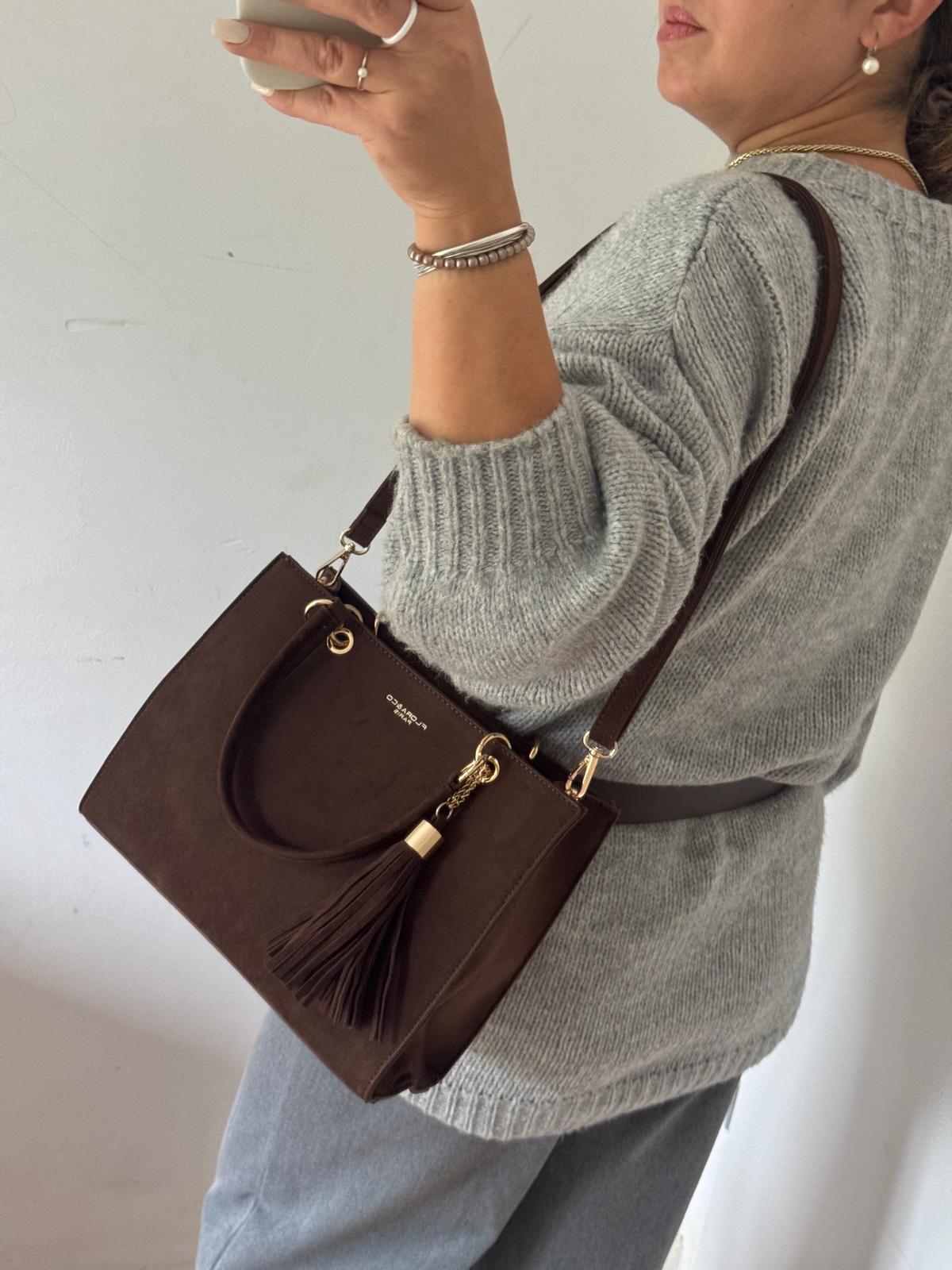 Rączki przytwierdzone do torebki oraz długi pasek regulowanej długości