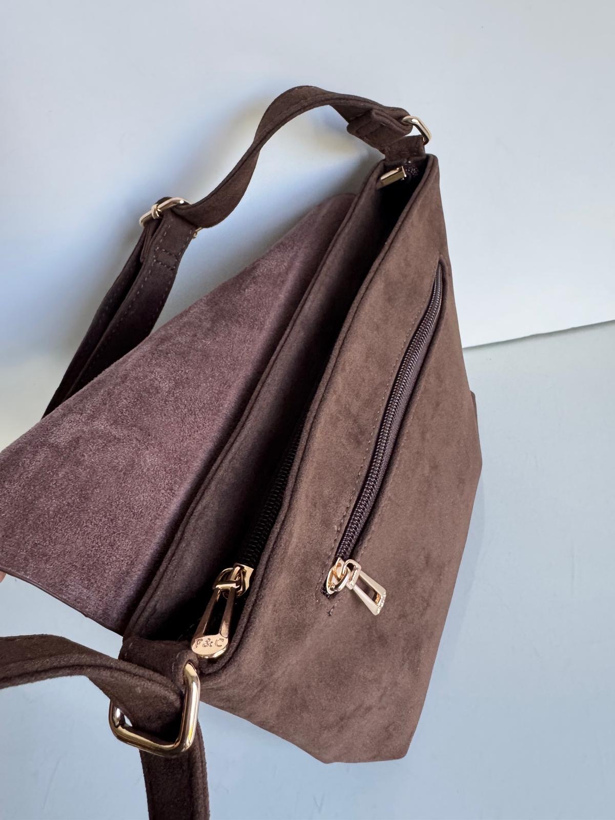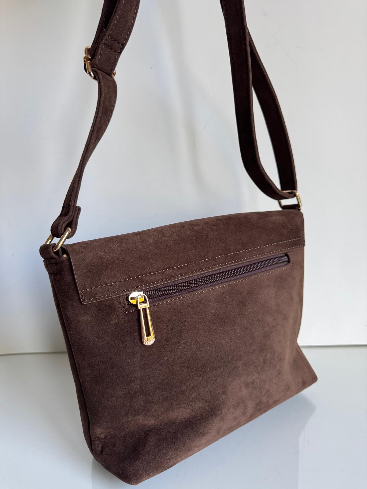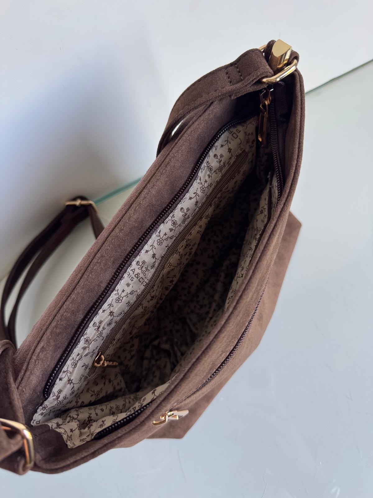 Zapinana na zamek/przykryty zamszową klapką torebki