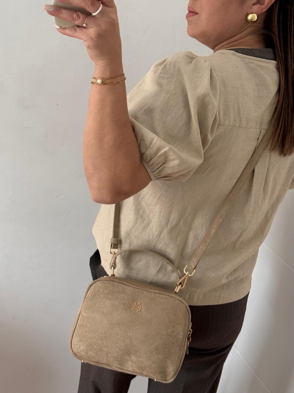 Materiał: zewnątrz: ekologiczna skóra, efekt zamsz